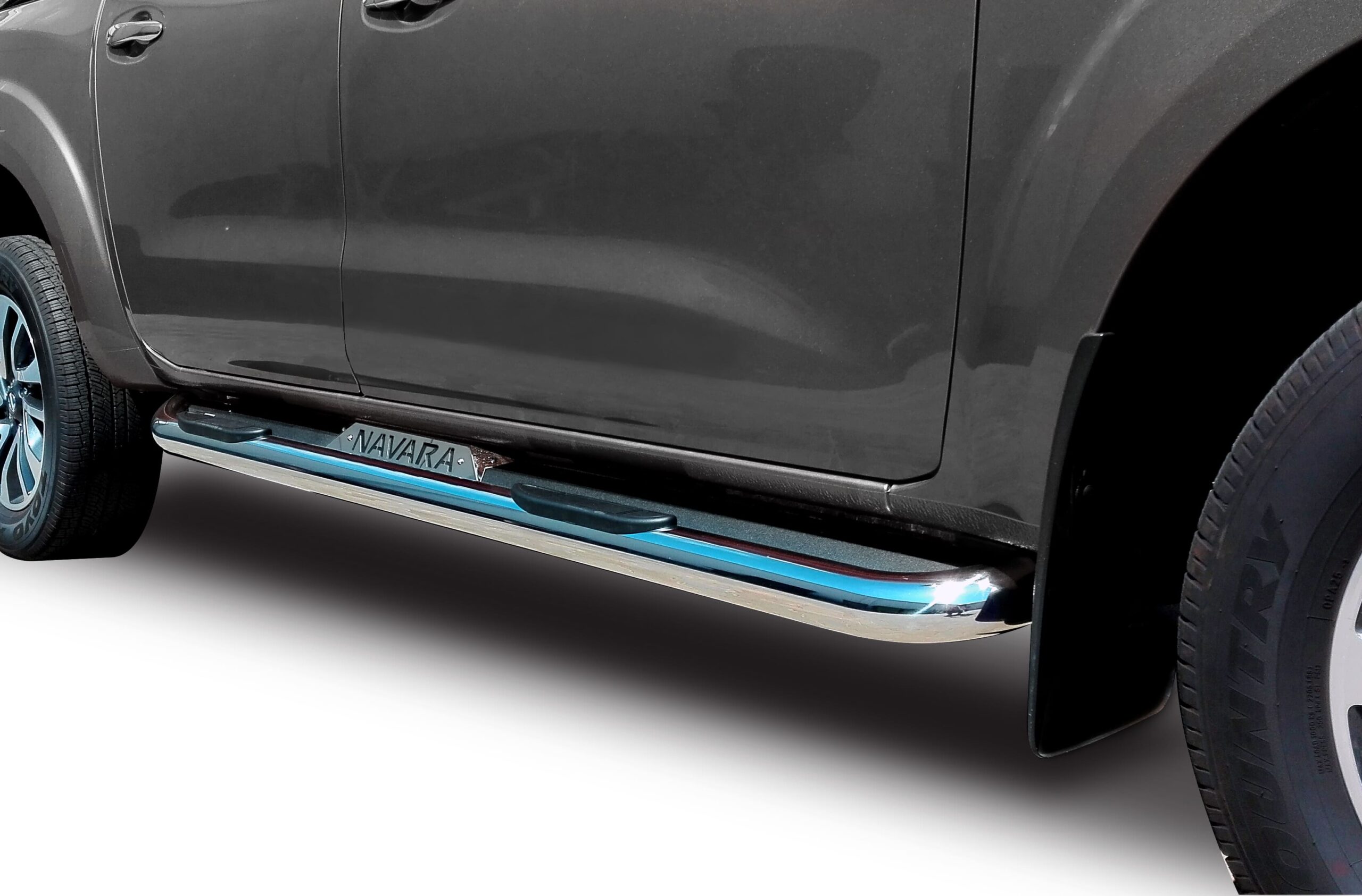 Nissan Navara polished stainless steel double cab side steps (MY2017, fits current Navara)